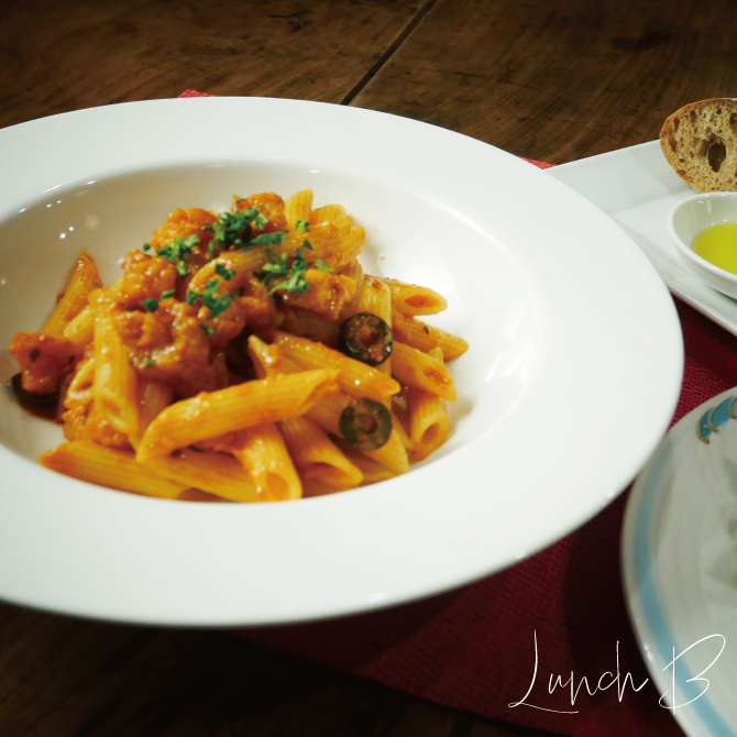 【ランチB】真ダラのペンネ 〜リボルノ風ソース〜 パスタ/サラダorバケット/ドリンク付
