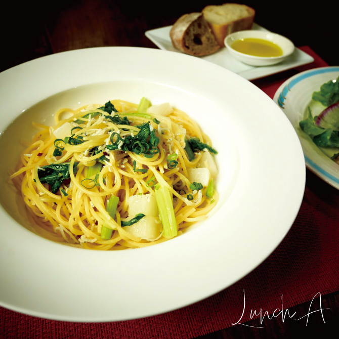 【ランチA】しらすとカブのスパゲッティ パスタ/サラダorバケット/ドリンク付