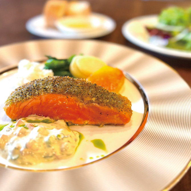 【ランチC】サーモンの香草焼き タルタルソース メイン/バケットorライス/ドリンク付