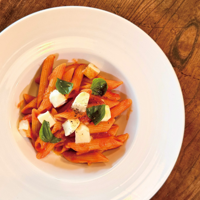 【ランチB】トマトとモッツァレラ・バジルのトマトソースペンネ パスタ/サラダorバケット/ドリンク付